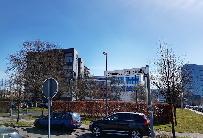 Mehr kaffeelastige Straßennamen in der Überseestadt Bremen, hier die „Johann-Jacobs-Straße" ©WFB / Yvonne Paeßler