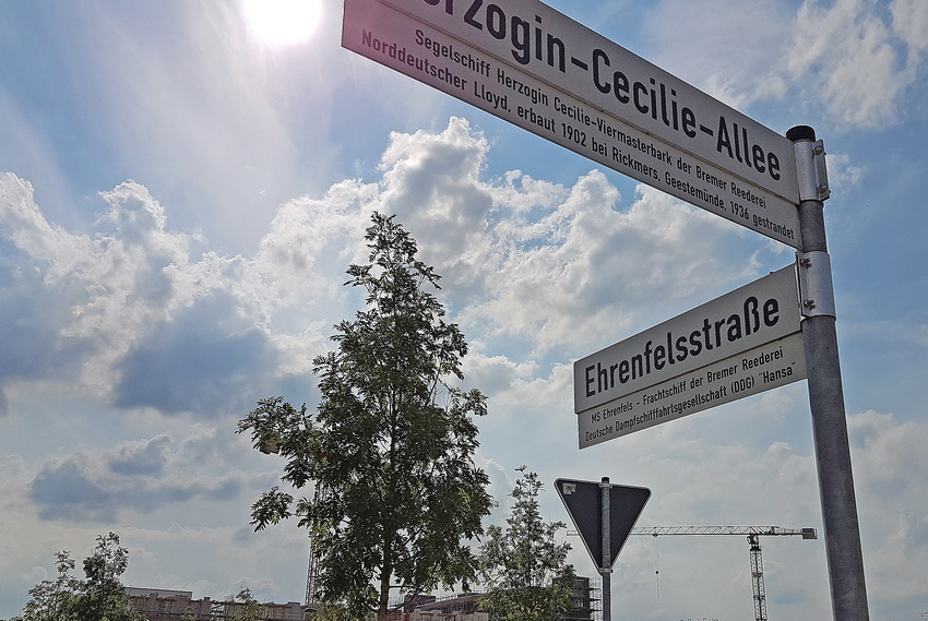 Die Ehrenfelsstraße ist nach einem Schiff der Deutschen Dampfschifffahrts-Gesellschaft (DDG) "Hansa" benannt ©Yvonne Paeßler